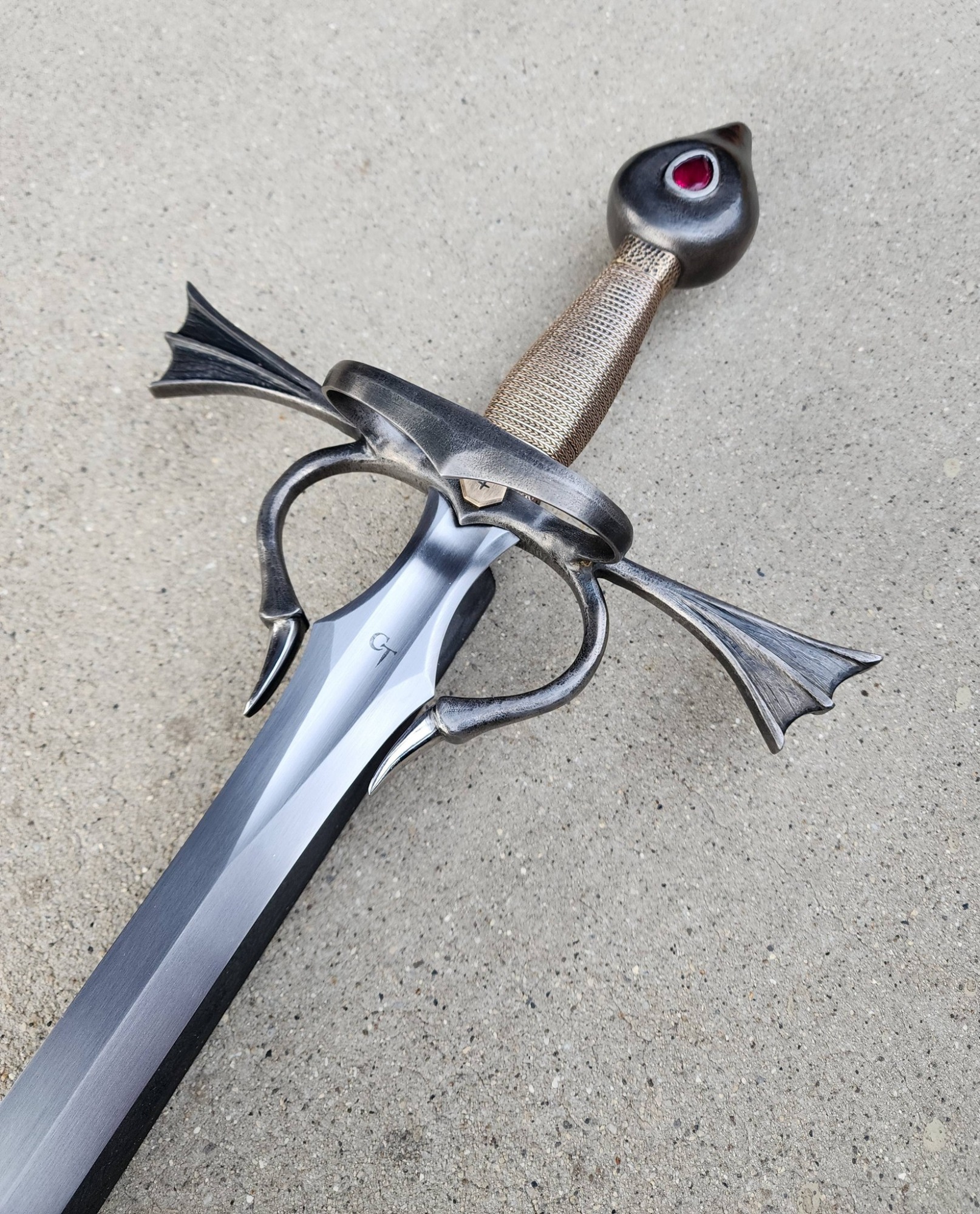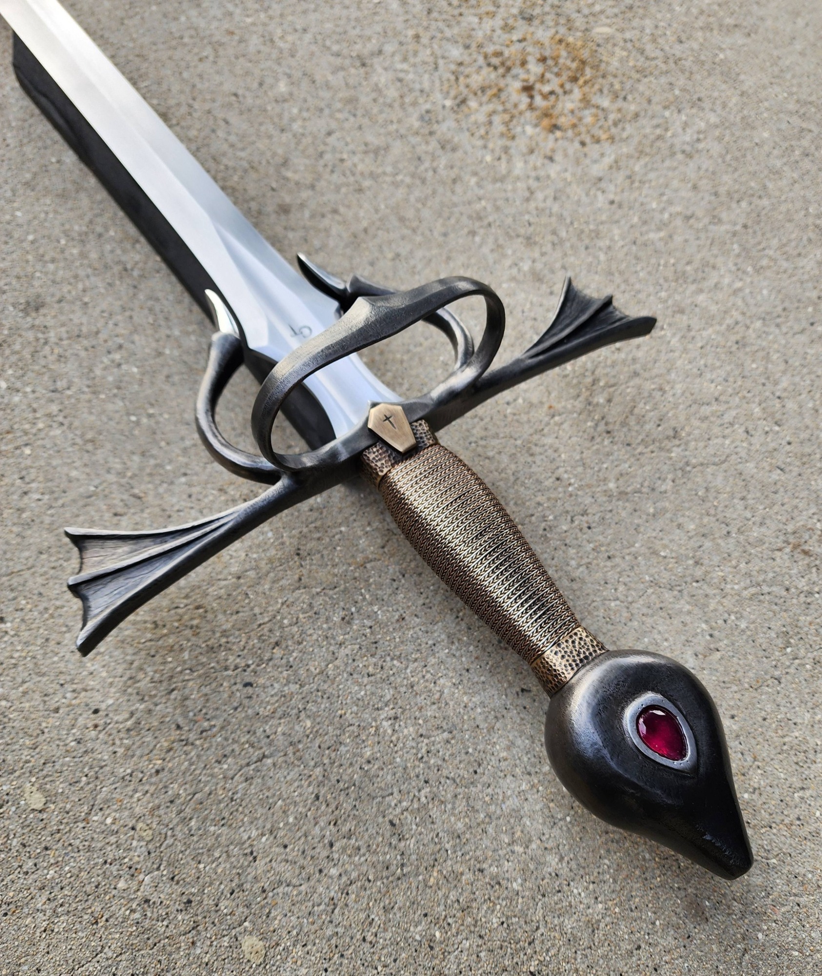 Arming sword ox blood Darkened Stainless hilt furniture 34.25" Overall 27.5" blade 1 lbs 14 oz 3" PoB