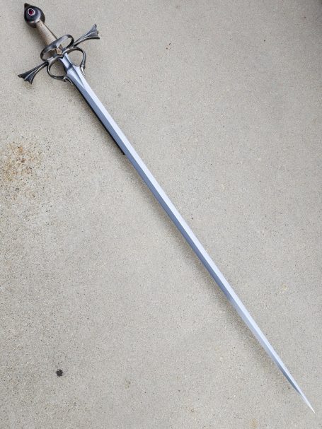 Hollow ground elven blade with walnut grip 40.75" Overall 31" Blade 1.5" Base Width 2lbs 2oz 3.75" POB